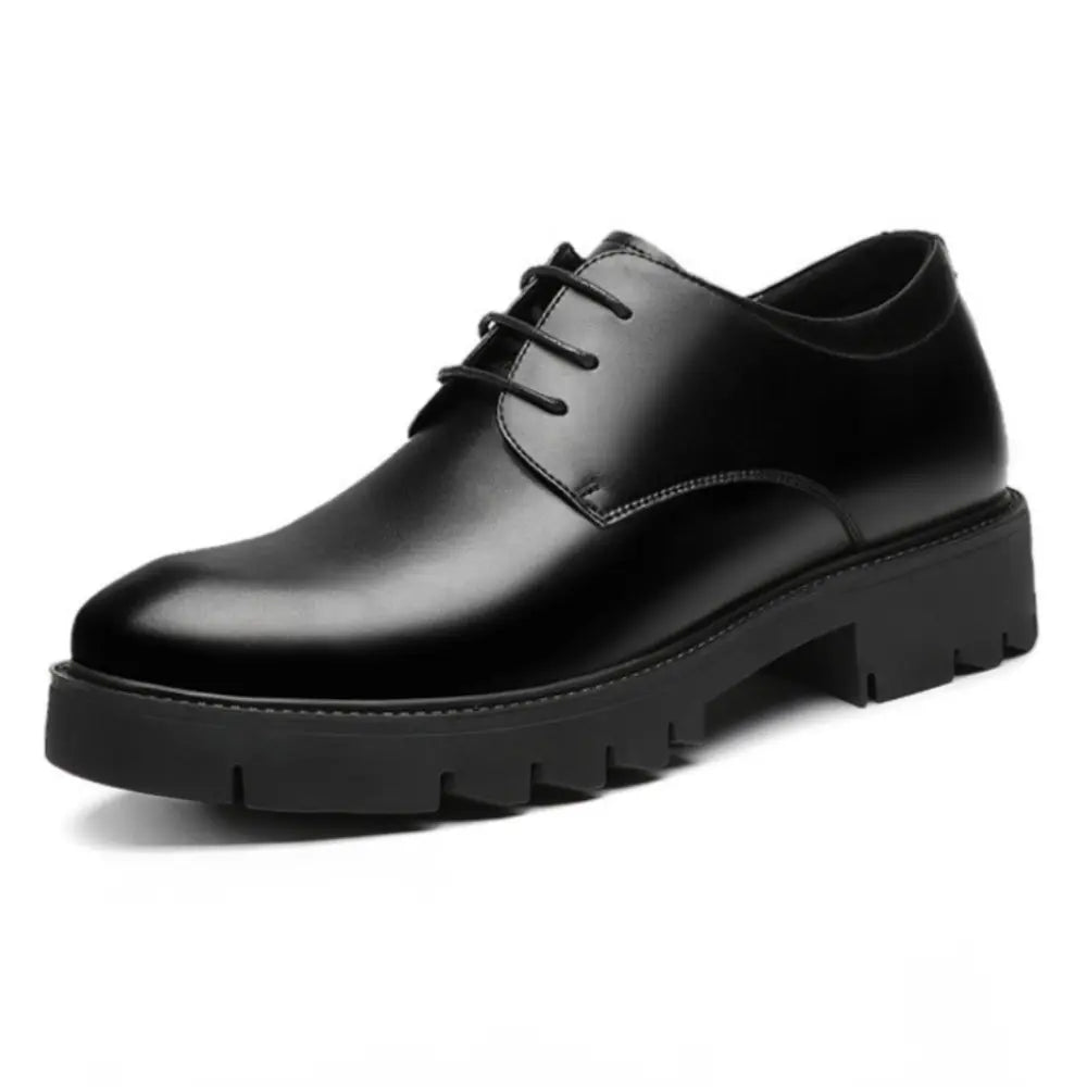 Ein raffinierter schwarzer Lederschuh mit einer eleganten, formellen Ästhetik. Dieses Design verbindet Eleganz und Praktikabilität, bietet eine 8 cm (3" Zoll) Erhöhung und behält gleichzeitig einen raffinierten und unaufdringlichen Look. Der Onx ist für diejenigen gedacht, die zeitlosen Stil mit einer diskreten Kante schätzen, was ihn zur perfekten Wahl für formelle Anlässe oder Geschäftskleidung macht.