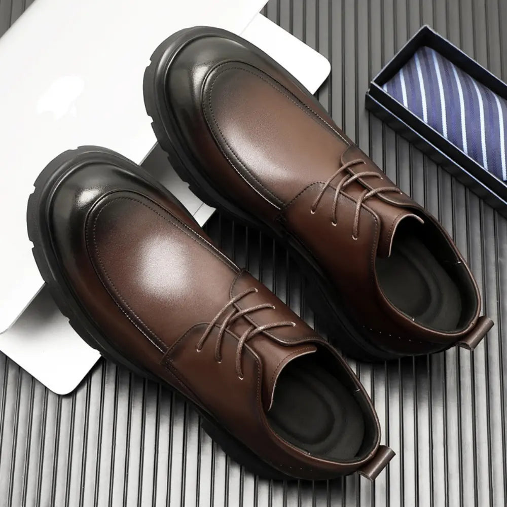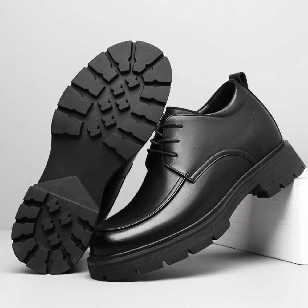 Ein vornehmer, formeller Schuh aus hochwertigem Leder, erhältlich in klassischem Braun und Schwarz. Mit einer Erhöhung von 8 cm (3" Inch) kombiniert der Regi nahtlos Raffinesse und subtile Eleganz. Sein schlankes Design ist auf formelle Anlässe zugeschnitten und sorgt für einen eleganten und souveränen Auftritt. Der Regi verkörpert zeitlosen Stil und raffinierten Luxus, perfekt für alle, die unaufdringliche Exzellenz zu schätzen wissen.