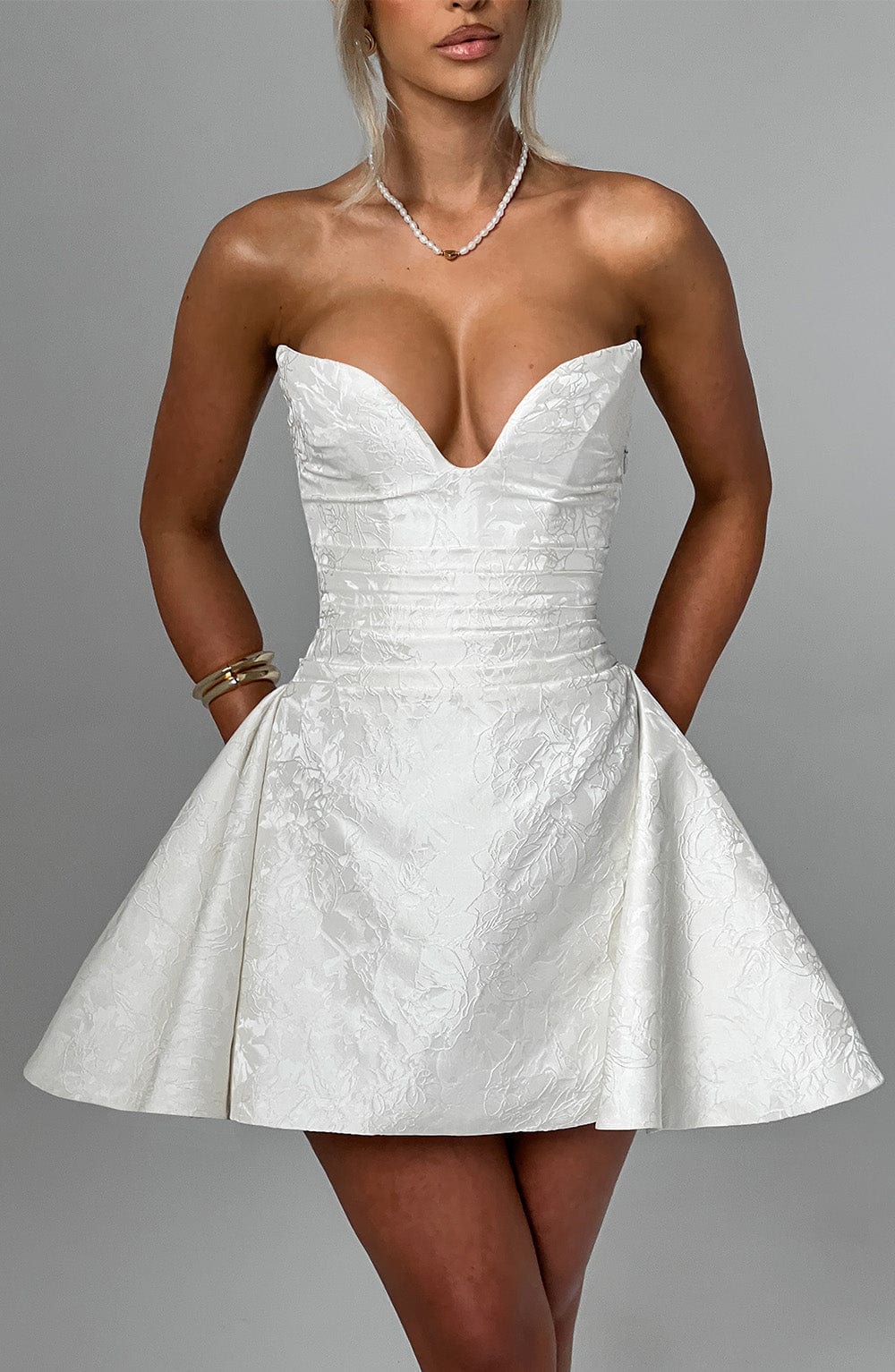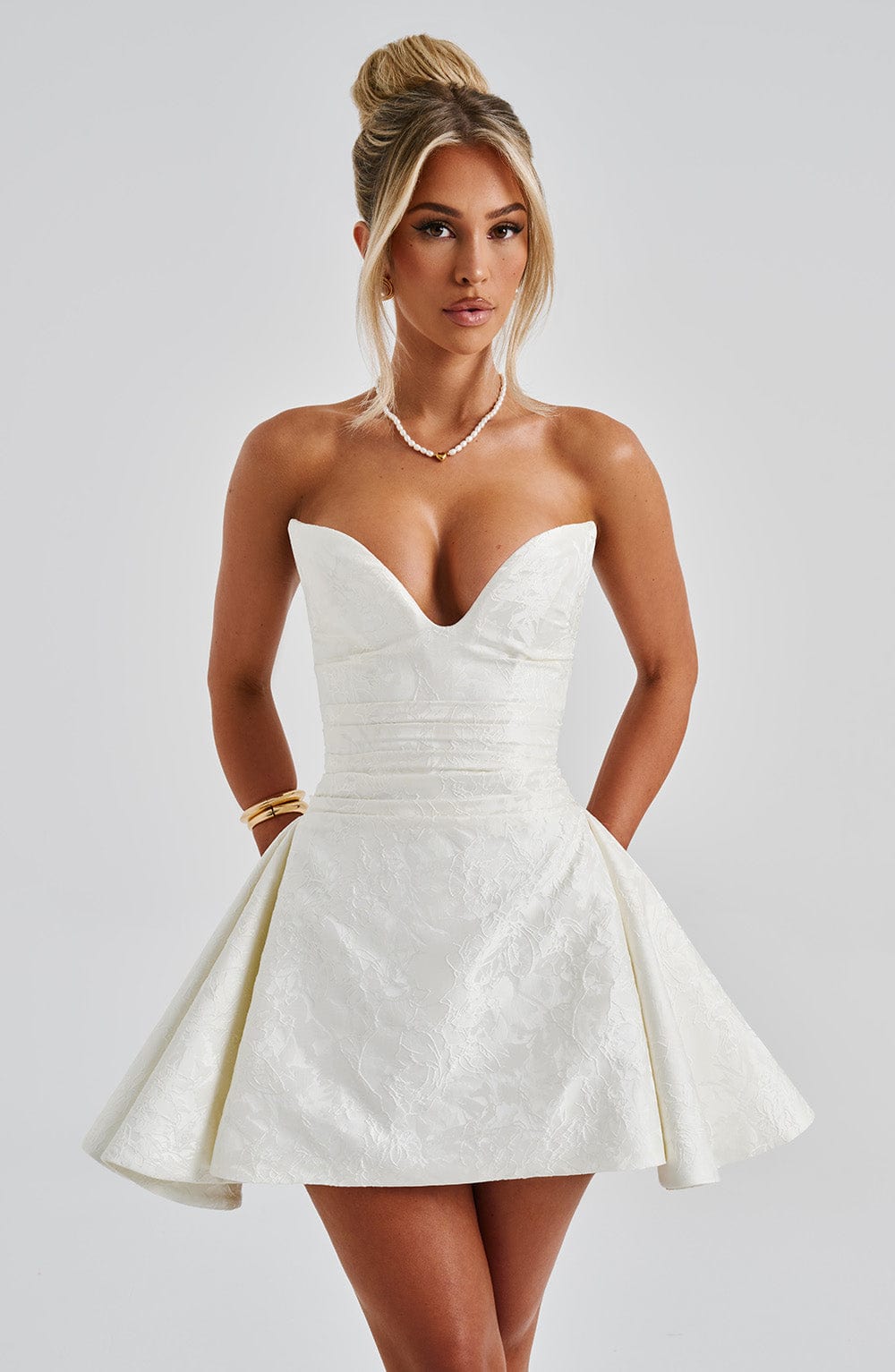 Mühelos elegant: Der Joan Playsuit in Elfenbein ist die luxuriöse Wahl für Ihren nächsten besonderen Anlass.